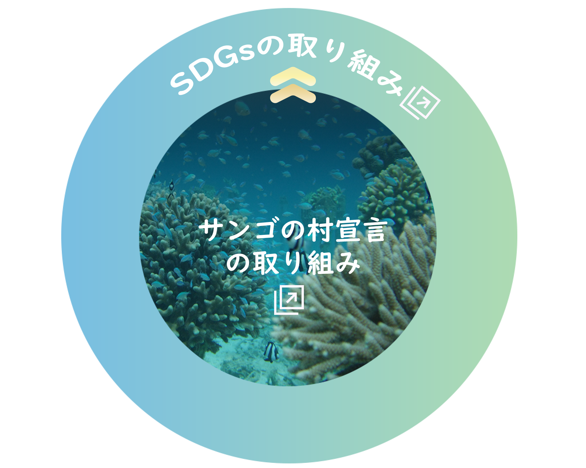 サンゴの村宣言に基づいてサンゴをはじめとする豊かな自然環境の保全を行い、SDGsの取り組みを通してそれらの影響を、経済活動や村民に還元する仕組みを構築していきます。