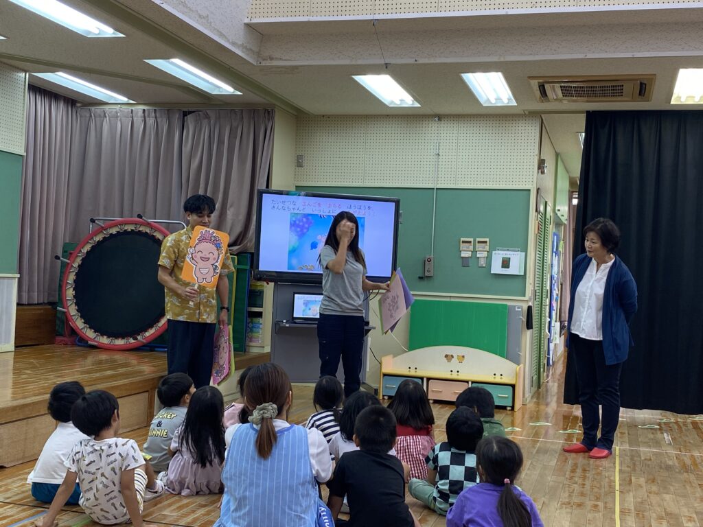 授業の中では、園児たちに大人気のキャラクター「さんなちゃん」が登場するアニメを活用し、カラフルで親しみやすいビジュアルとストーリーでサンゴ礁が魚たちの住みかであることや、海の環境を守る役割を果たしていることを紹介しました。アニメ視聴後には、サンゴに関するクイズなどのアクティビティが行われ、子どもたちは楽しく学びながら理解を深めていきました。