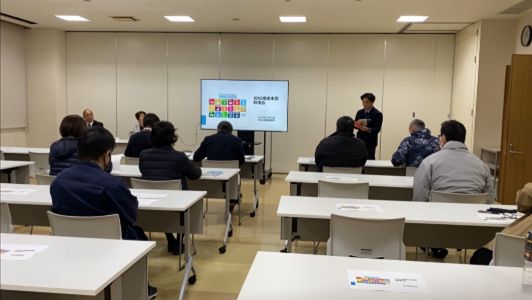 午前にはSDGs推進本部会が、午後には幹事会が行われ、村内各課の代表者や関係者が出席しました。令和5年度に策定された第6期総合計画をもとに、各部門で設定されたKPI(重要業績評価指標)をSDGs達成にどのように結びつけるかについて、具体的な議論が交わされました。