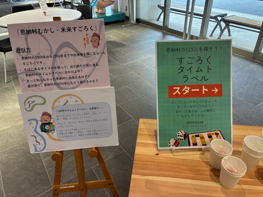 恩納村文化情報センター(恩納村図書館)では、地域の歴史と未来を楽しく学べる参加型展示 「恩納村むかし・未来すごろく」 を開催しています。