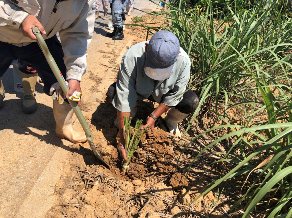まず注目すべきは、赤土流出を防ぐための自然資源を活用した工夫です。たとえば、ベチバーというイネ科の植物を畑の周囲に植栽することで、豪雨時にも土壌が流れ出すのを抑える効果が得られます。さらに、サトウキビの葉殻などを畑に敷き詰める「トラッシュ・カバークロップ」は、赤土の流出を防ぐだけでなく、雑草抑制や保温効果、さらには作物の生育促進といった副次的効果も期待されており、持続可能な農業の実現にも貢献しています。