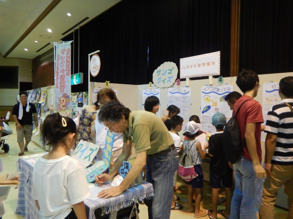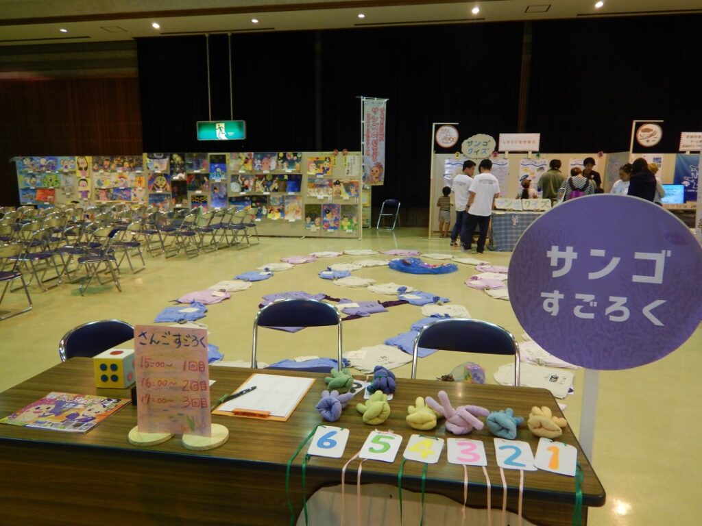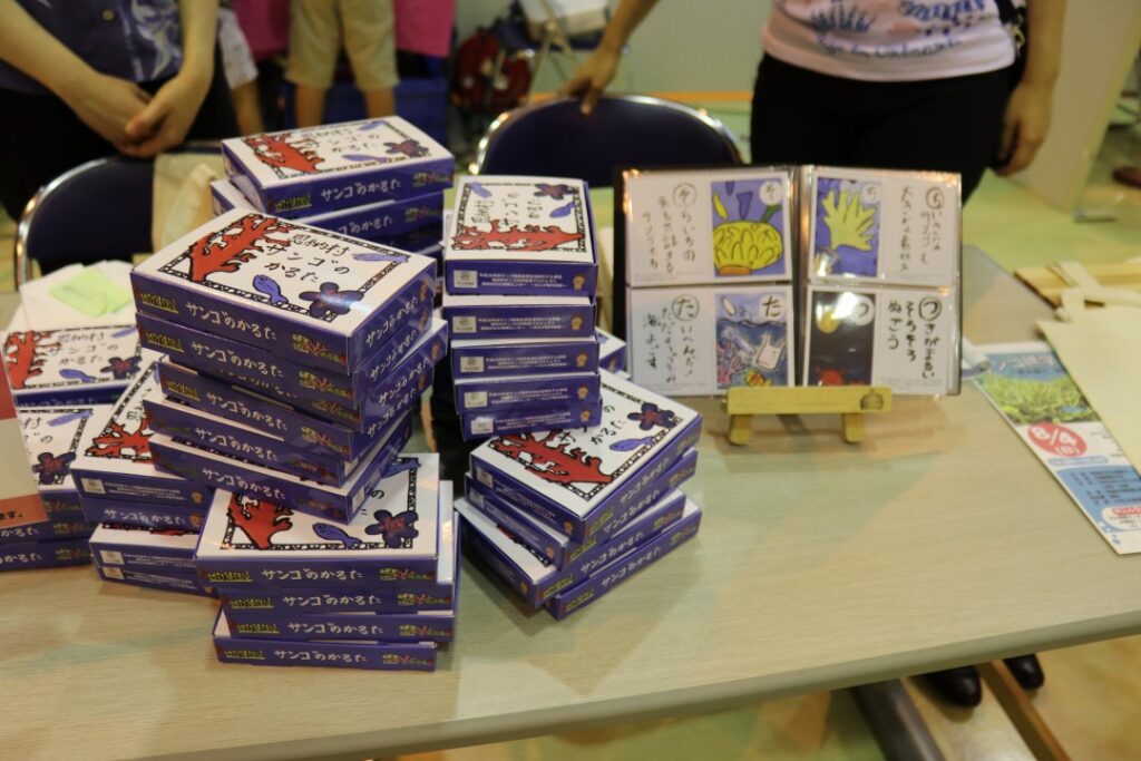子どもから大人までサンゴについて楽しみながら学ぶことができるサンゴクイズ、サンゴに関するパネル展示やサンゴすごろくのコーナー、また、関係団体の活動報告や「サンゴ礁を守るために私たちができること」への投票、実際に海域で養殖を行う「サンゴの基盤に絵を描こう」などのワークショップが開催されました。